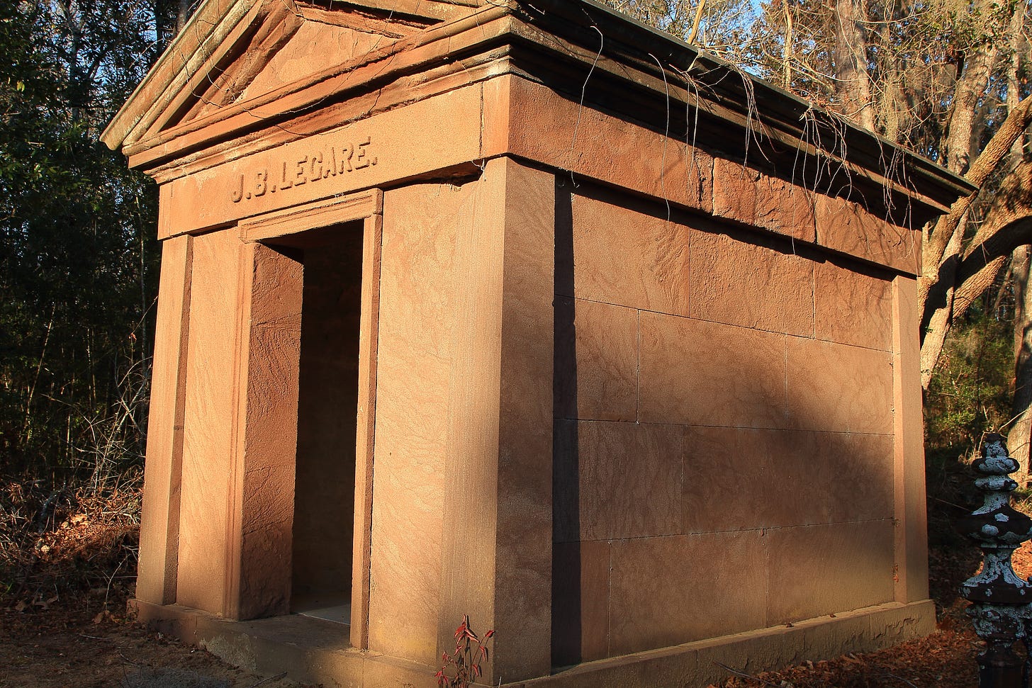 February 9, 2026, on the way to a book event I stopped at the church again. Stepping from my car I saw it. The Legare mausoleum.