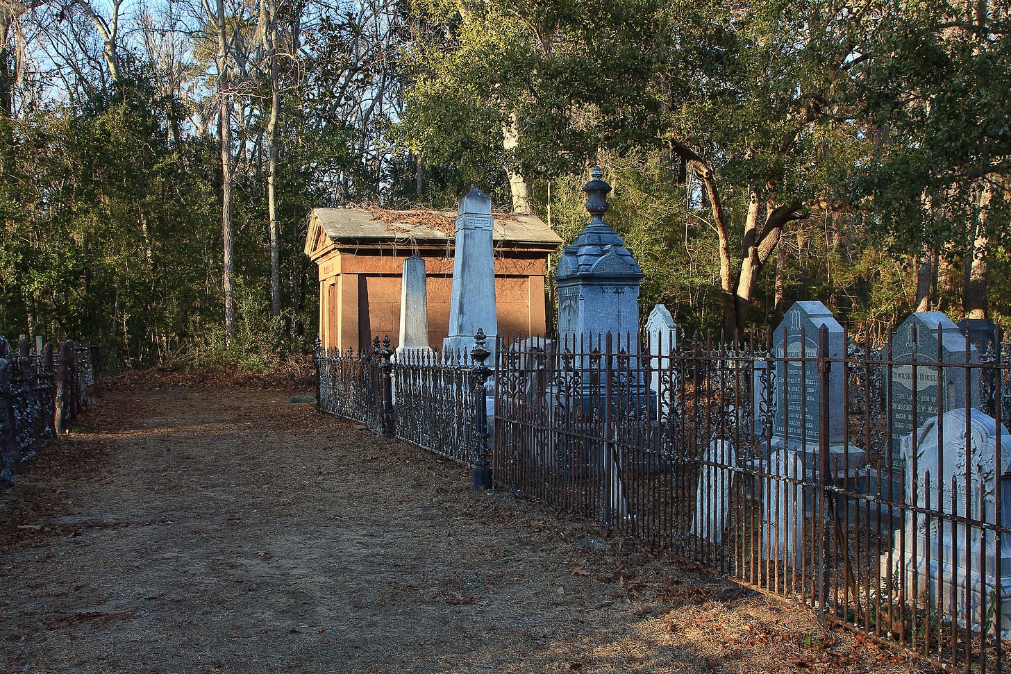 Voodoo and ghost stories make a sobering mix as you drive across ancient sea bottom. As you spirit into the past among the ghosts of cruising sharks and skittering blue crabs you’ll pass the Edisto Island Presbyterian Church. Lovely as can be with a congregation said to be among the oldest of its denomination in the country. 1685. People have been laid to rest in the churchyard since 1797. Among their number is Julia Legare, who died on the island in 1852 at the age of 22. They buried her alive ... so the story goes.