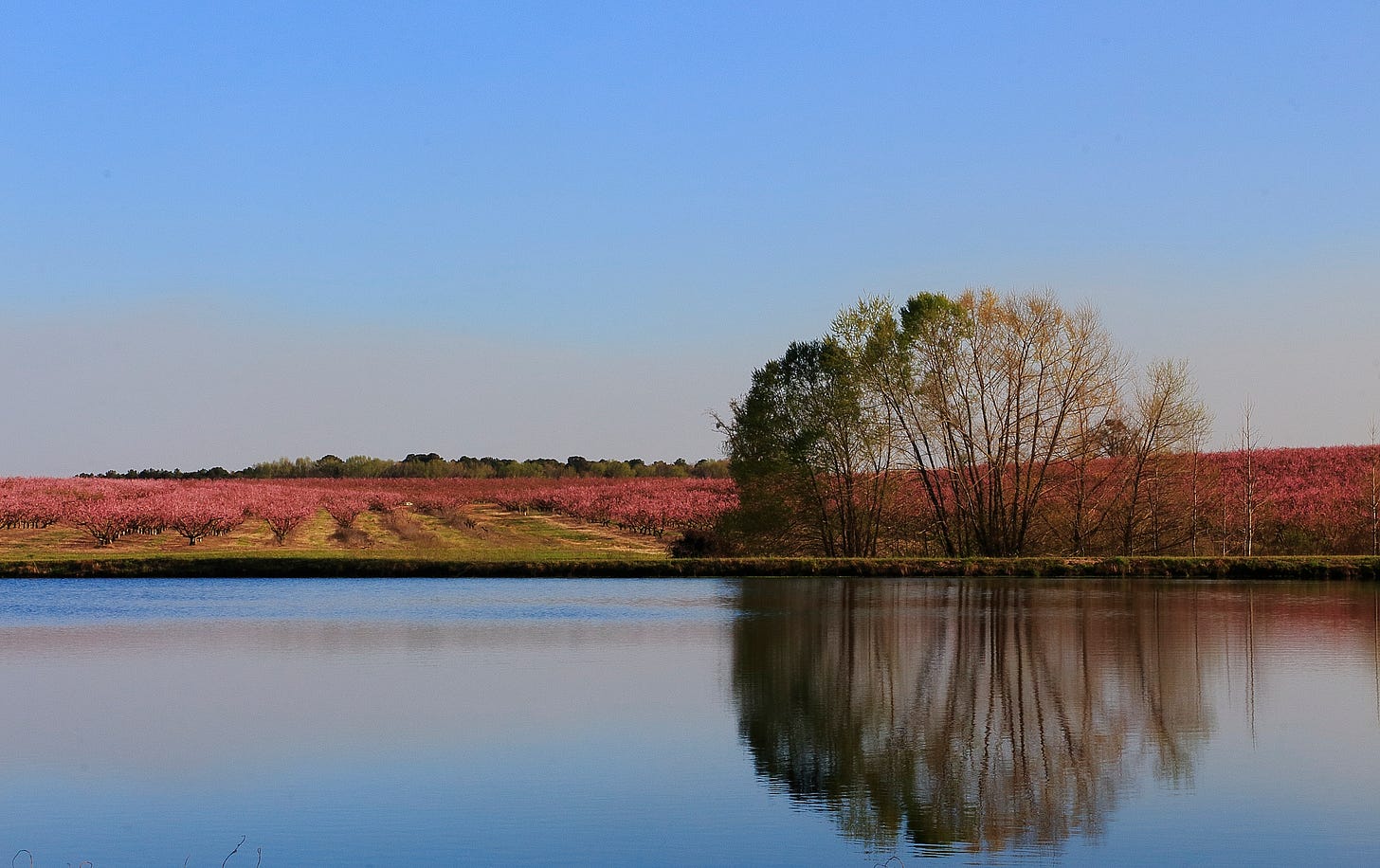 All this peach business comes to me because it’s March when peach trees flower. A peach orchard in full bloom makes people do crazy things. One warm morning in peach country a lawman spotted jeans, blouses, and lingerie strewn across a peach tree. Laughter rang out. Through petals he saw two would-be models slender as blades of grass taking selfies. They were high on beauty, the trees and their own.